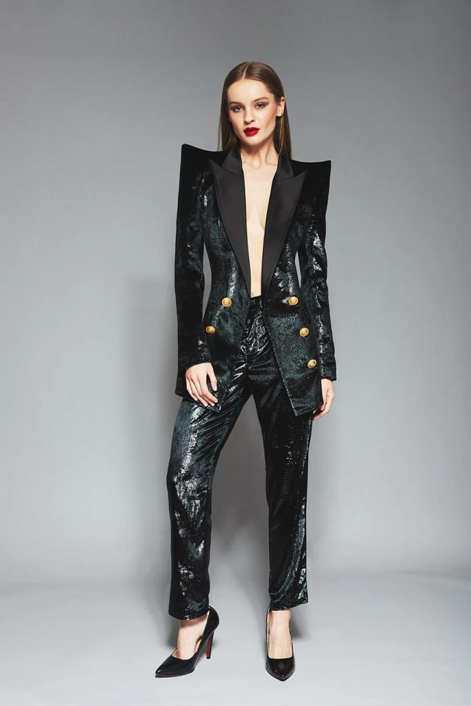 Femenino y masculino a la vez pero siempre una declaración, un blazer de gran tamaño y un pantalón sastre actualizado es la definición de estilo. Eleva instantáneamente cualquier ocasión con su silueta y es un lujo que ofrece un giro a los clásicos.